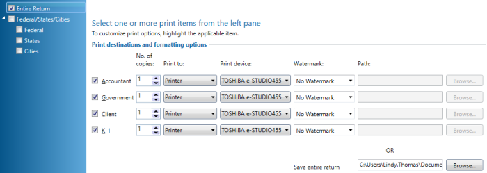 1. Select Entire Return, Federal/States/Cities units, or both on the navigation panel.