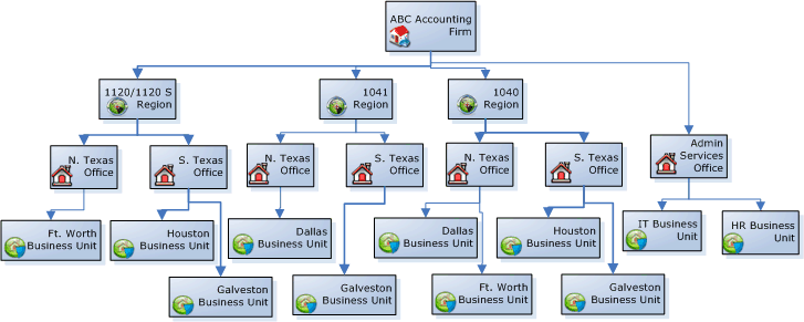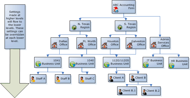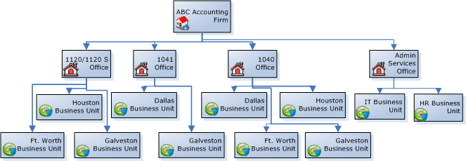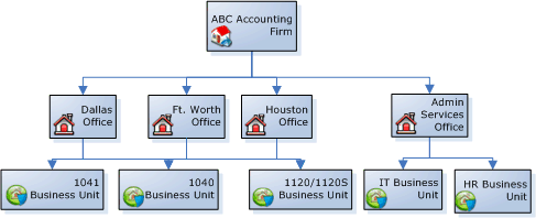Individuals or single offices may find that the firm and the default office and business unit are the only structure they need or want for efficient operations. Even if you are in this category, you may have a business reason to set up business units (such as Tax Preparation, Auditing, or Consulting) in your firm.